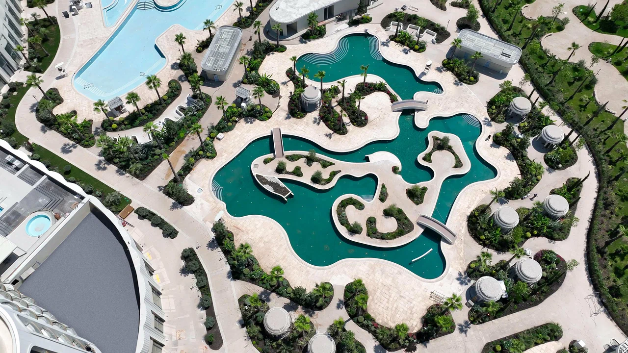 Элитный комплекс создан в соединении стихий солнца и воды. Ни одна резиденция на черноморском побережье не может похвастаться таким количеством искусственных водных зеркал на территории - 11 бассейнов с пресной и природной морской водой, соответствующей высшим стандартам качества.